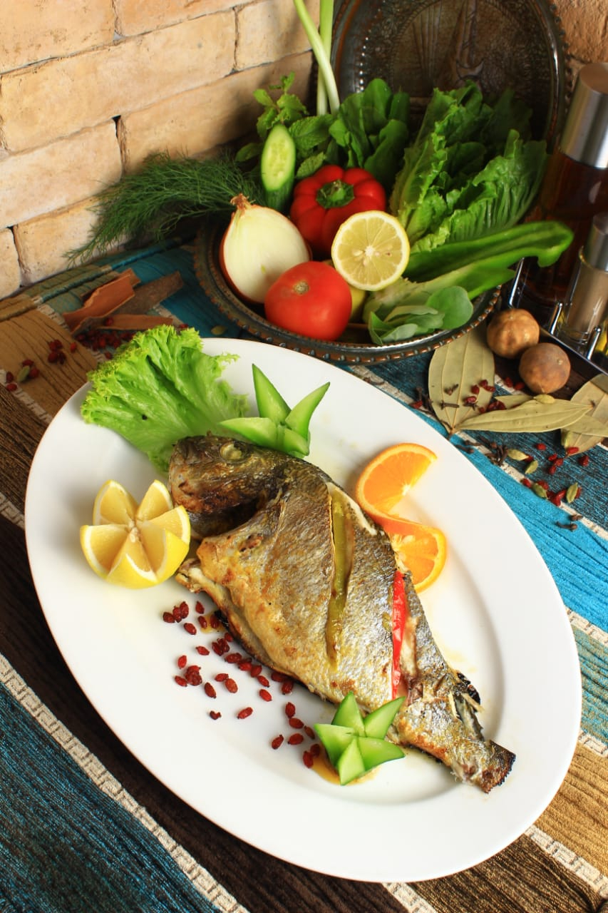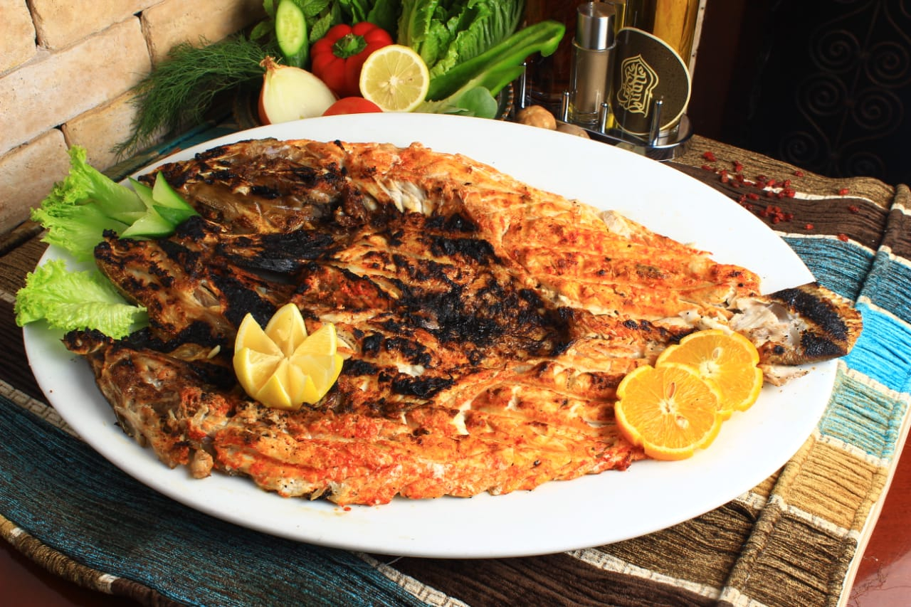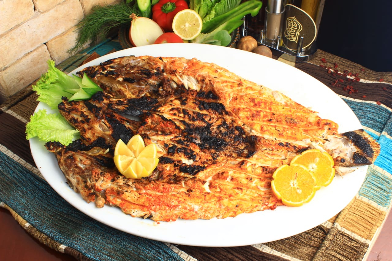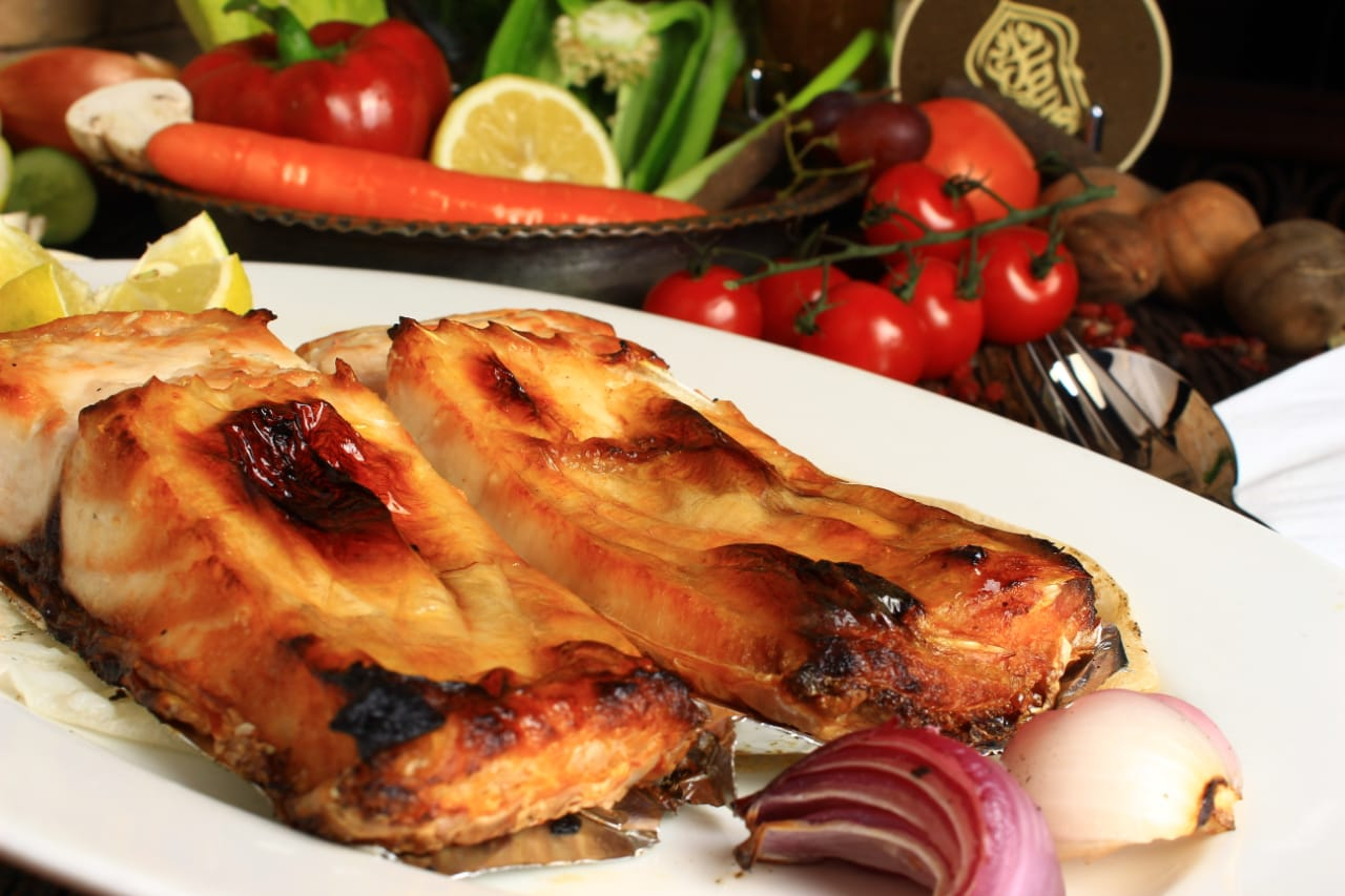 طبق تكه سمك علي الفحم