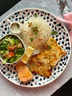 سمك بلطي + أرز + سلطة +...