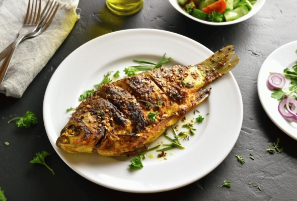 سمك بلطي + أرز + سلطة